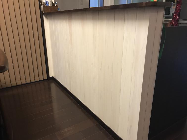 LDKの壁の一部の汚れが気になり、腰壁へ変更!無垢板を使用し手触り・デザインともにGOOD!!