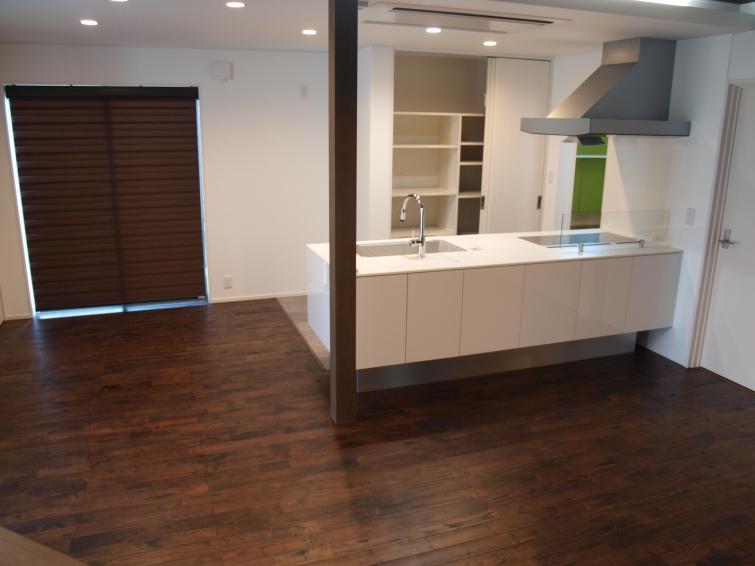 対面キッチンに和室を開放できる造りのため広々空間を実現。