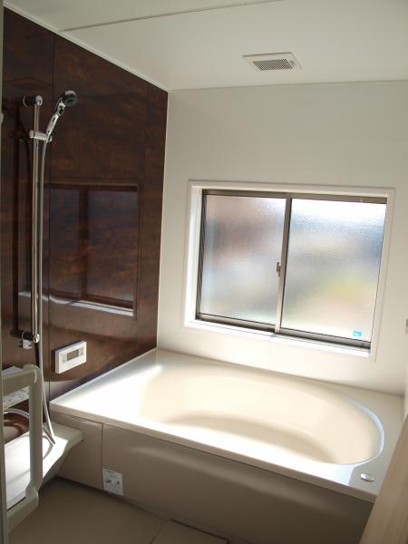 奥様からの要望で、外仕事の旦那様、部活帰りの子供がリビングを通らずお風呂へ行けるようにするため、勝手口から直接お風呂へ行ける造りに。