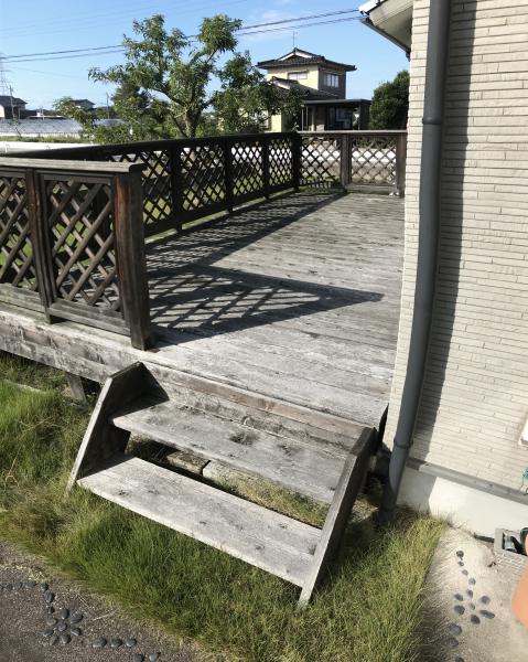 塗装が剥げていたデッキ材を再塗装。デッキが甦りました!!