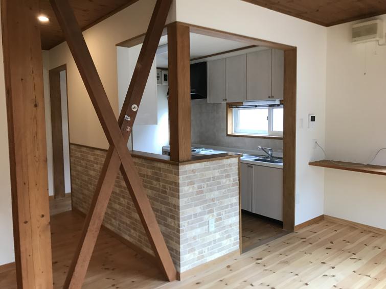 リビングから閉鎖的だったキッチンの壁を抜いて開放的な空間に。